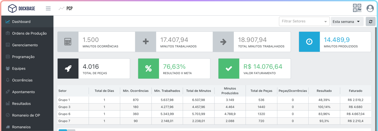 Com a Dockbase, você visualiza cada etapa da produção, evita atrasos e reduz desperdícios